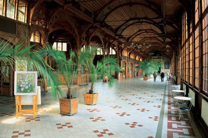 W domu zdrojowym znajduje się najdłuższa na Dolnym Śląsku modrzewiowa Hala Spacerowa o długości 80 m, z piękną roślinną polichromią i witrażami oraz herbem rodziny von Schaffgotsch nad sceną.